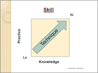 The first in a progression to achieve on a personal level. Once one has made the decision to develop a skill, be it dexterous, mental , or performing , ability or skill at doing same will increase directly with the knowledge and the practice of it.